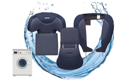シートカバーを取り外して洗濯機で洗える※2ので、汗や食べこぼしも安心です。