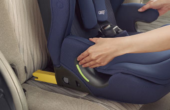 ワンタッチでISOFIXコネクターが伸びるから、取り付けスムーズ。トップテザーでもしっかり固定でき、足元がスッキリします。
