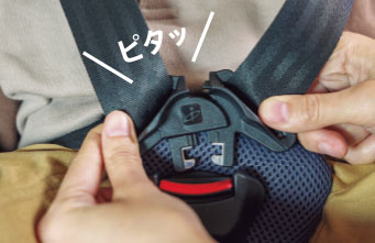 マグネットの力でタング同士がパッとくっつくので、ベルト装着がサッとできます。
