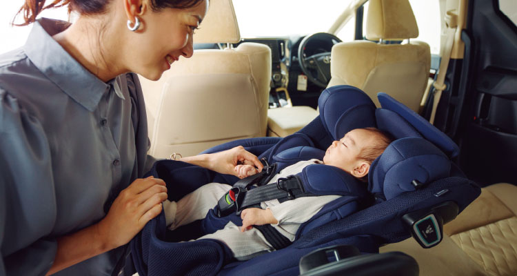 限られた車内スペースでも、自然な姿勢でリラックスでき、赤ちゃんをしっかり守る。
