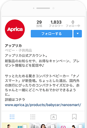 - Instagramアップリカ公式アカウント「@aprica.jp_official」をフォローしていただいている方