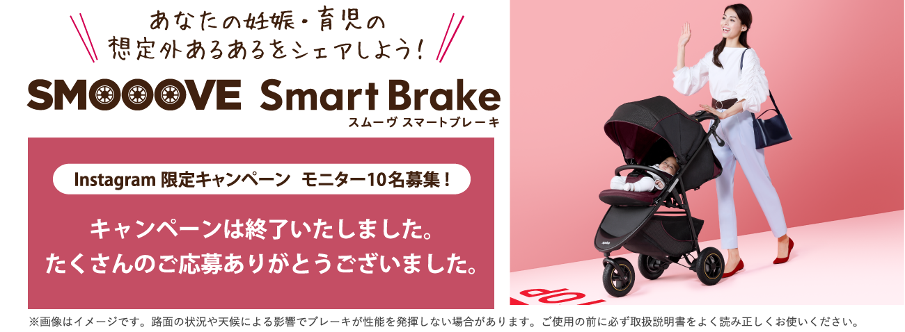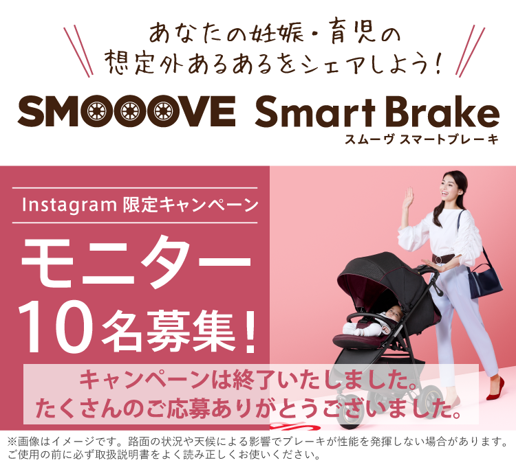 - 「スムーヴ スマートブレーキ」を使って赤ちゃんとのおでかけの様子をInstagramに最低3回投稿していただける方。