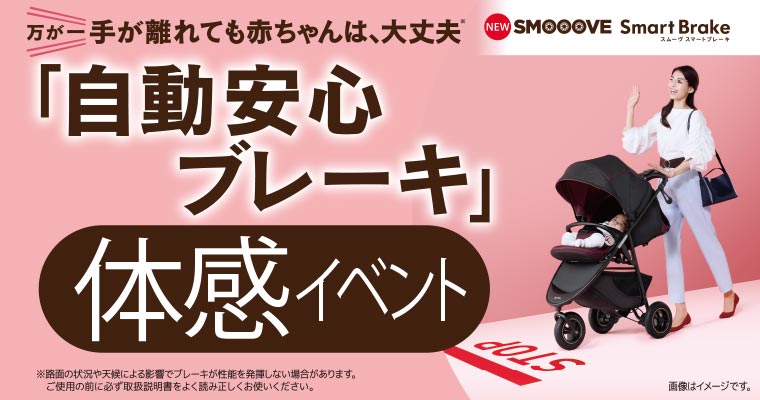 万が一、手が離れても自動的に車輪がロックされ、勝手にベビーカーが動きだすのを防ぐのでママも安心しておでかけできます。その自動安心ブレーキを体感できるイベントを開催いたします!