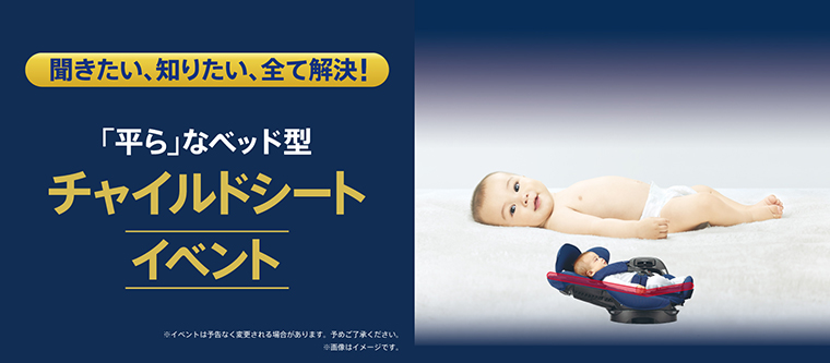 ただいま、その「平ら」なベッド型チャイルドシートのことがよくわかる店頭イベントを実施中!