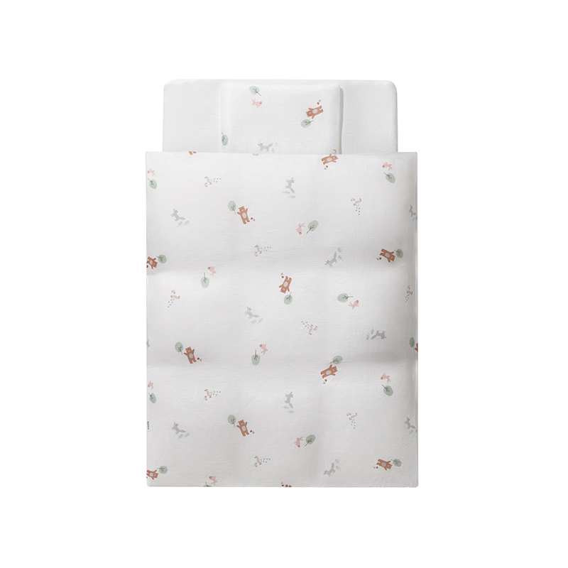 床に直接敷くのはもちろん、ベビーベッドにも合わせて使用いただけるサイズなので、ライフスタイルに応じてお選びいただけます。