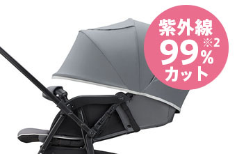 でこぼこ道での振動をがっちりフレームとやわらかサスペンションからなる振動吸収設計が軽減。赤ちゃんの全身をやさしく守ります。