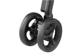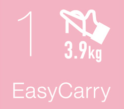 折りたたんでスリムに自立。しかも、フロントガードをもてば、階段の昇り降りや電車やバスでのおでかけもラクラクです。