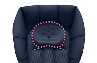 背もたれに設置された通気口が風を通し、反射板が路面の反射熱を跳ね返して、座席の温度上昇を防ぎます。
