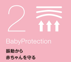 でこぼこ道での振動をがっちりフレームとやわらかサスペンションからなる振動吸収設計が軽減。赤ちゃんの全身をやさしく守ります。