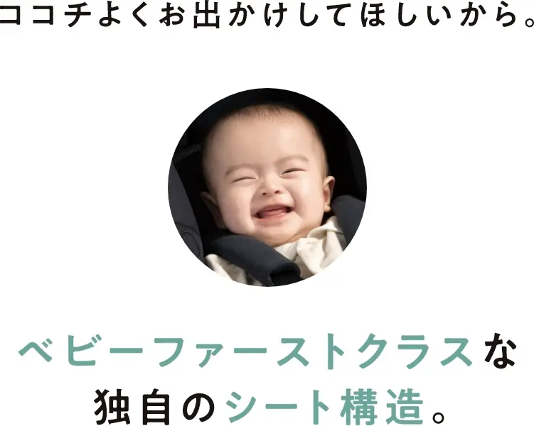 本体シートの上にさらに一枚メッシュシートを追加し、極ふわな乗り心地を実現。中の素材は通気性とクッション性を両立した「シルキーエアー」。カンタンに外して洗濯機で丸洗いできる※7から、いつも清潔に保て、肌トラブルの原因となる汗や雑菌から赤ちゃんを守ります。