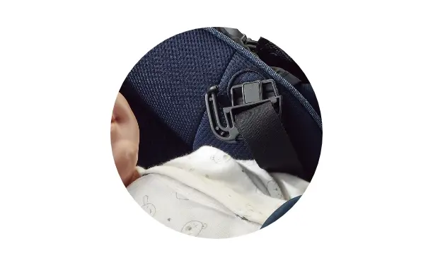 イージーベルトのバックルをマグネットホルダーに添えるとぴったりくっついて、赤ちゃんの乗せおろしがさらにラクラク。