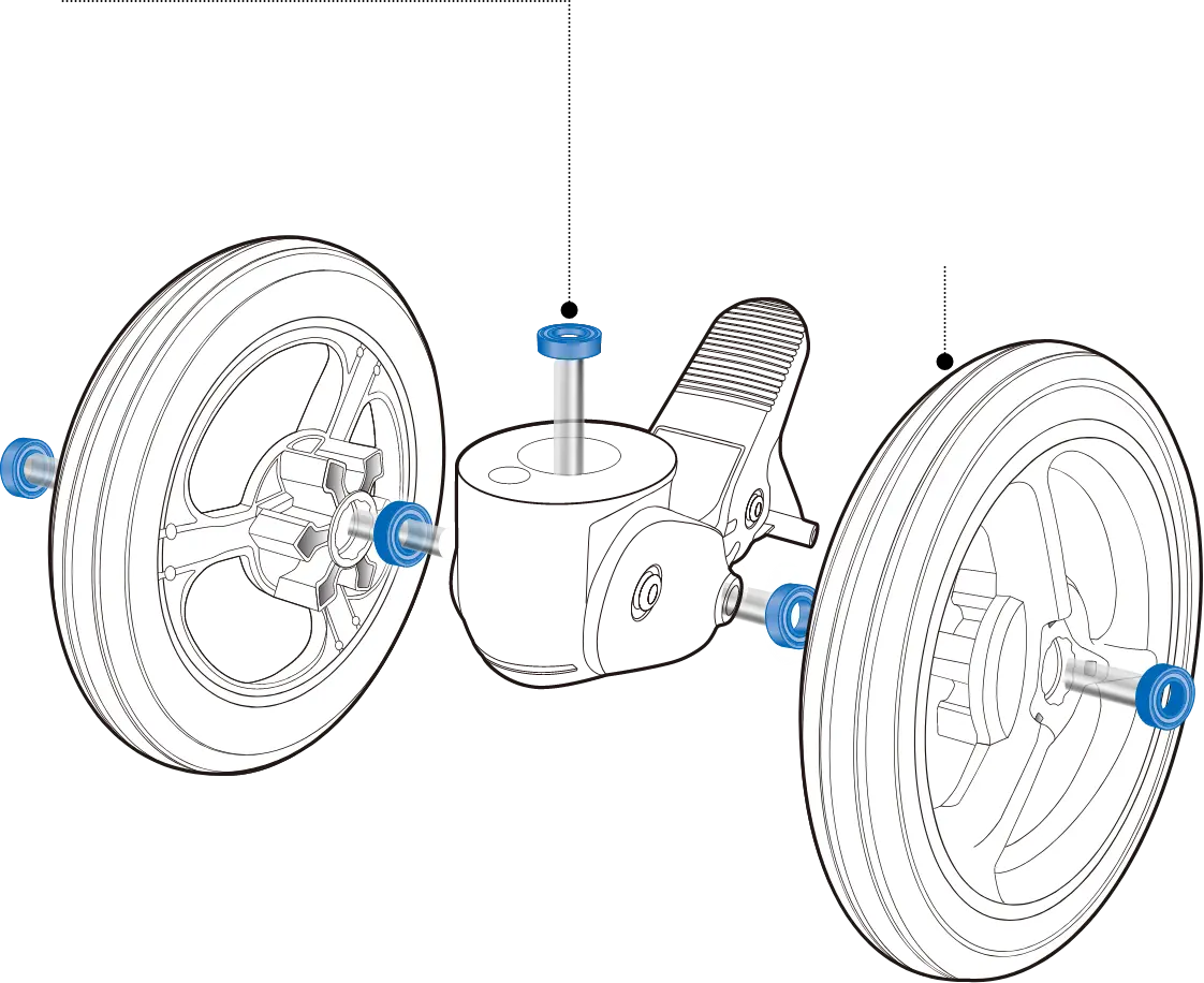 ベアリングを車輪あたり5個、合計20個も内蔵。