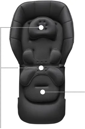 首・腰すわり前の赤ちゃんの頭と腰を安定させ、負担の少ない快適な姿勢を保つ。
