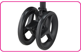 自動で前輪ロックが解除。進行方向に対して常に後輪はロックされ、前輪はフリーに。押しやすく快適です。