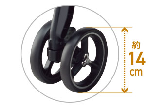 つなぎ目をがっちり溶接することで剛性を高めたフレームが車体のぐらつきを抑え、でこぼこ道での振動を軽減。フレームがしっかりしているので、押しやすくちょっとした段差でも力がかけやすい利点もあります。