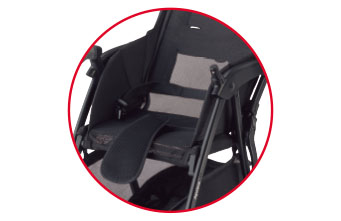 座面の下にソファーのスプリングのようなクッションを搭載。揺れに応じて座面がやさしく上下することで赤ちゃんに伝わる振動を吸収します。