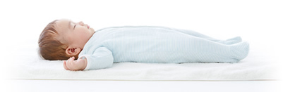 赤ちゃんの呼吸を妨げないアップリカ独自の「平ら」なベッド型。発育段階に合わせて理想的な姿勢を保ちます。