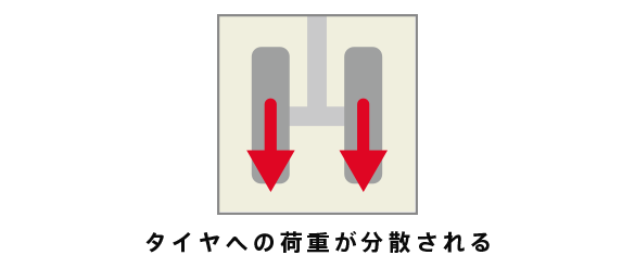 ダブルタイヤなら、道路の隙間などにはまりにくく、万一タイヤをとられても、車体が大きく傾いたりしにくいので安心・安全です。