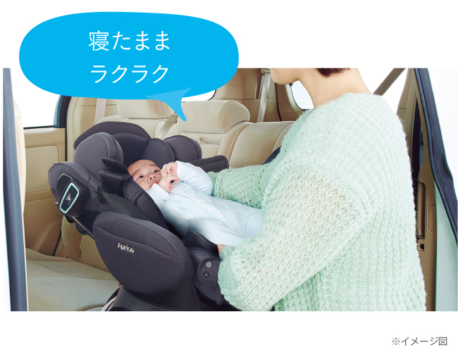 ※2 赤ちゃんの姿勢が150°以上に寝かせられるリクライニング構造を持ち、進行方向に対し横向きに使用できるチャイルドシート