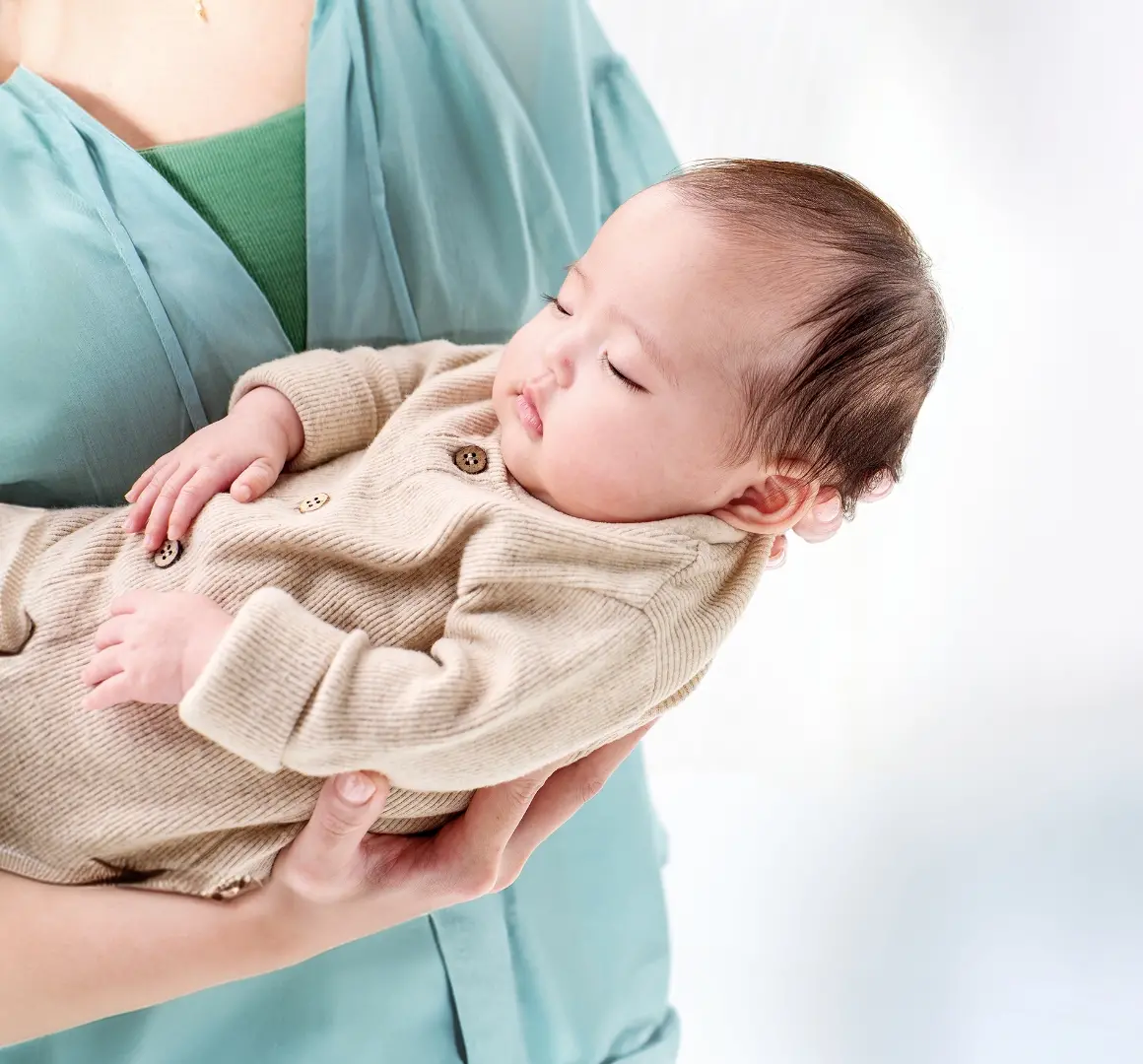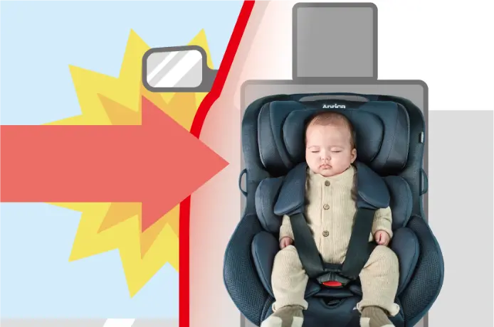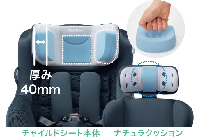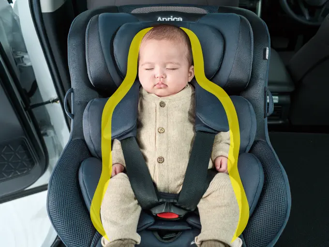 やわらかい赤ちゃんの頭を守る衝撃吸収材。