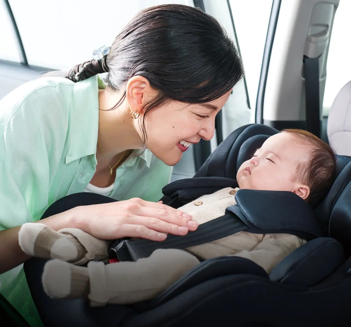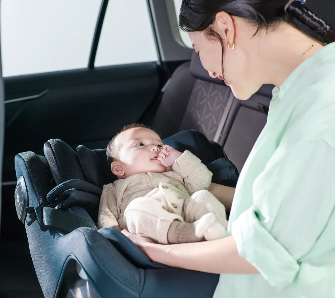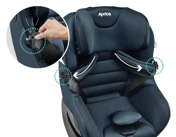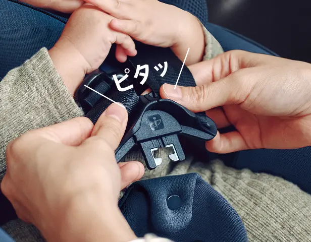 肩ベルトを開いた状態にキープでき、乗せおろしスムーズ。