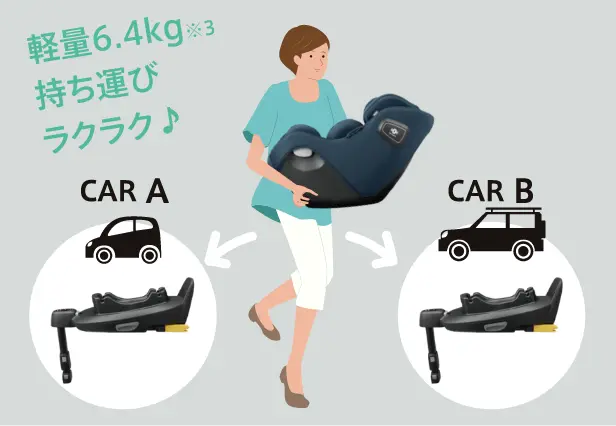 車が2台以上あっても、もう1台ベースを追加すれば、シートを付け替えて共用することができます。