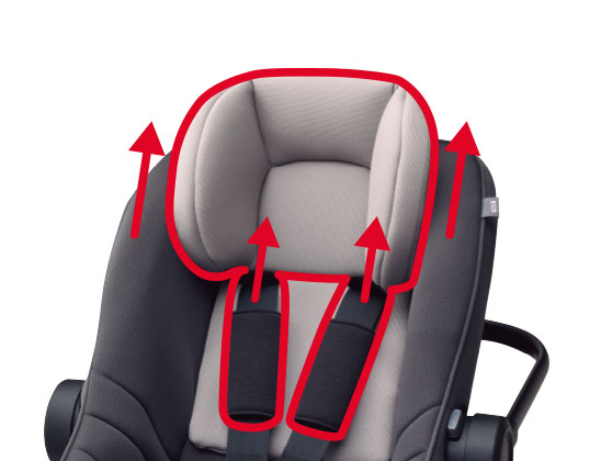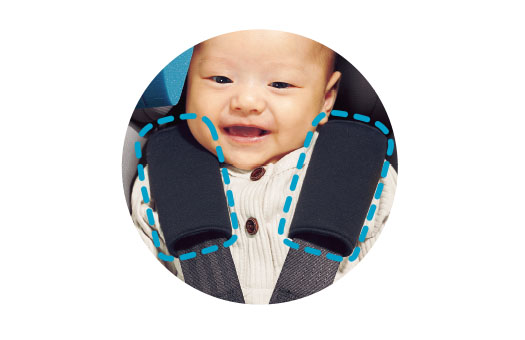 ヘッドレストと連動して肩ベルトの位置も調節できます。