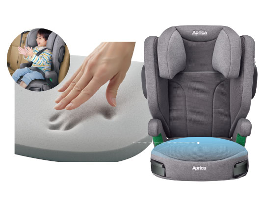 お子さまが汗をかきやすい部分に速乾性のあるメッシュシートを採用。