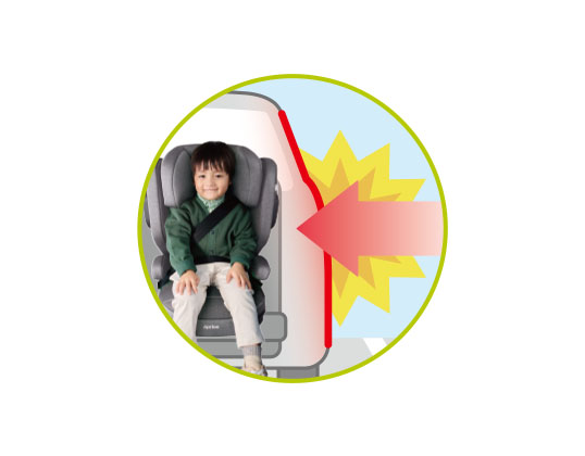 両サイドに装備された頑丈なプロテクターで、ドア側からの強い衝撃から守ります。
