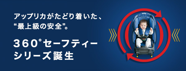 アップリカ独自の「平ら」なベッド型チャイルドシート。3ステップで成長に合わせて理想的な姿勢を守る。