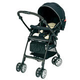 ベビーカーに抱っこひもがセットできる「キャリートラベルシステム」対応で、コンパクトにたためる「ラクーナビッテ」(アカチャンホンポ限定モデル)。