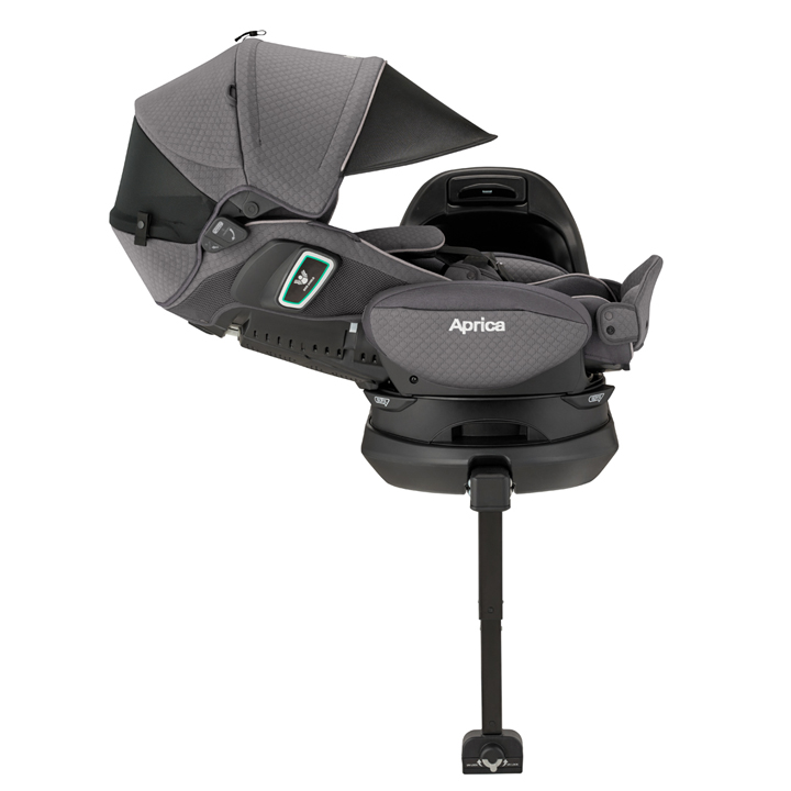「平ら」なベッド型回転式チャイルドシートで日本初※1、前後からだけでなく、ドア側からの衝撃も考慮した新安全規則、R129※2に適合。両サイドに装備された頑丈なプロテクター「サイドシールド」※3と「全身マモールクッション」※4で、生まれてすぐの赤ちゃんの未熟なからだを360°全方位からしっかり守るした「フラディア グロウ ISOFIX 360° セーフティー プレミアム」のアカチャンホンポ限定モデル。