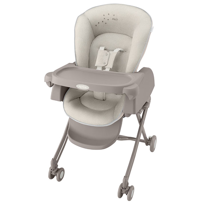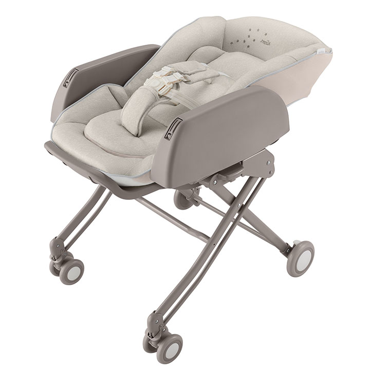 6段階の高さ調節でリビングでも使いやすい。キャスター付きでラクラク移動できるから、いつでもどこでも赤ちゃんといっしょにいられます。さらに、イスにもなって4歳(48カ月)まで使えます。