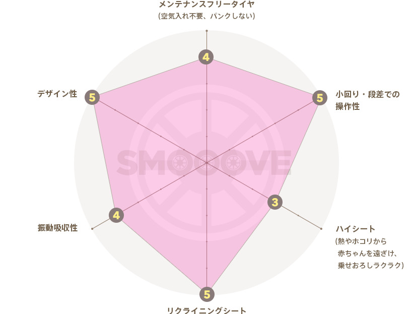 荷物台が大きいので出先での突然の荷物にも対応してくれます。また、デザインがかっこいいとママ友に褒められます。「スムーヴ」でよかったです!