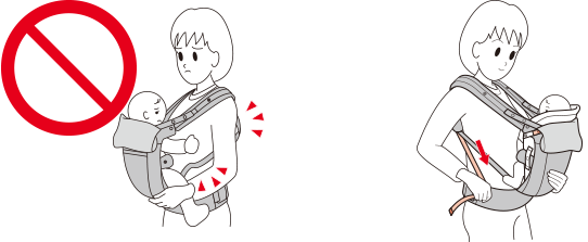 ● お子さまを使用者の身体に強く縛り付けた状態にしない。