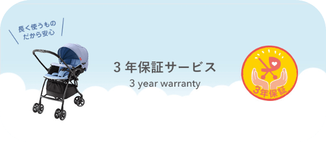 アップリカベビーカー、下記対象製品をお買い上げのお客様に対して、通常ご購入された時点から1年間のメーカー保証期間を、3年間へ延長させて頂きます。アップリカでは、ベビーカーを安心してお使い頂けるよう製品開発と品質向上に努めていますが、保証期間中に故障が発生した場合は保証規定に基づき無料にて修理させて頂きますので、安心してお使い頂けます。