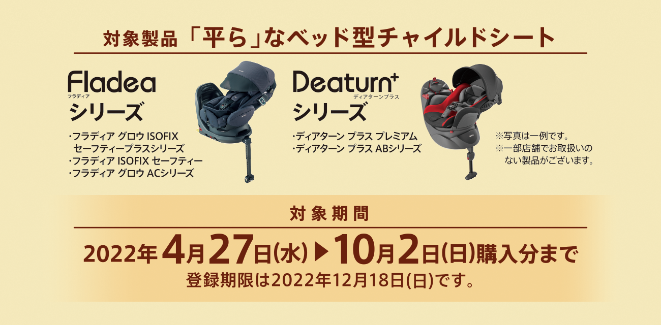 2022年4月27日〜2022年10月2日の期間にご購入の、下記のベッド型チャイルドシート